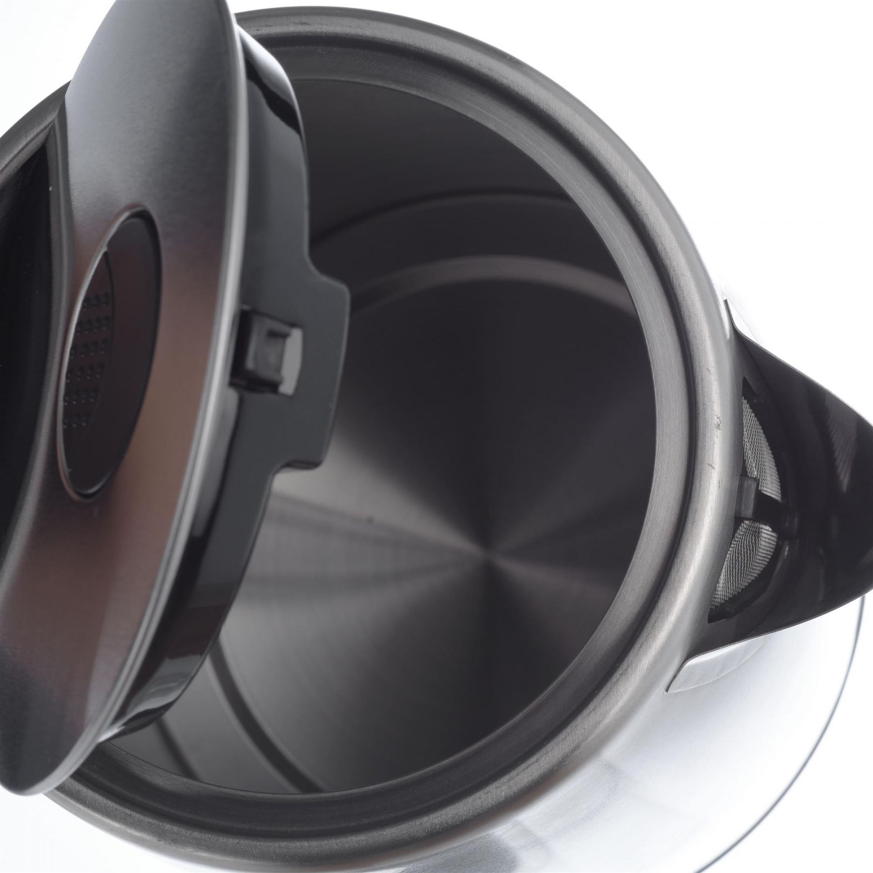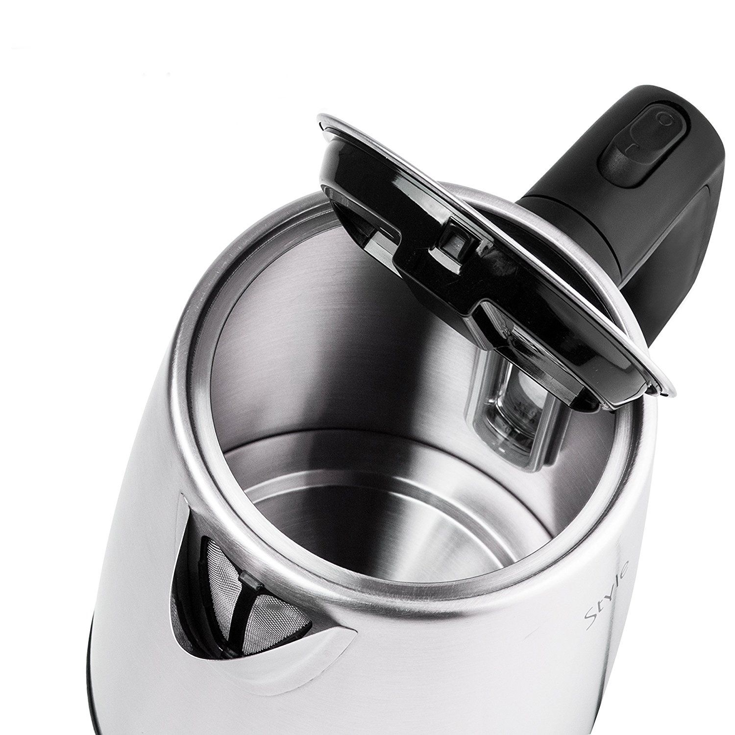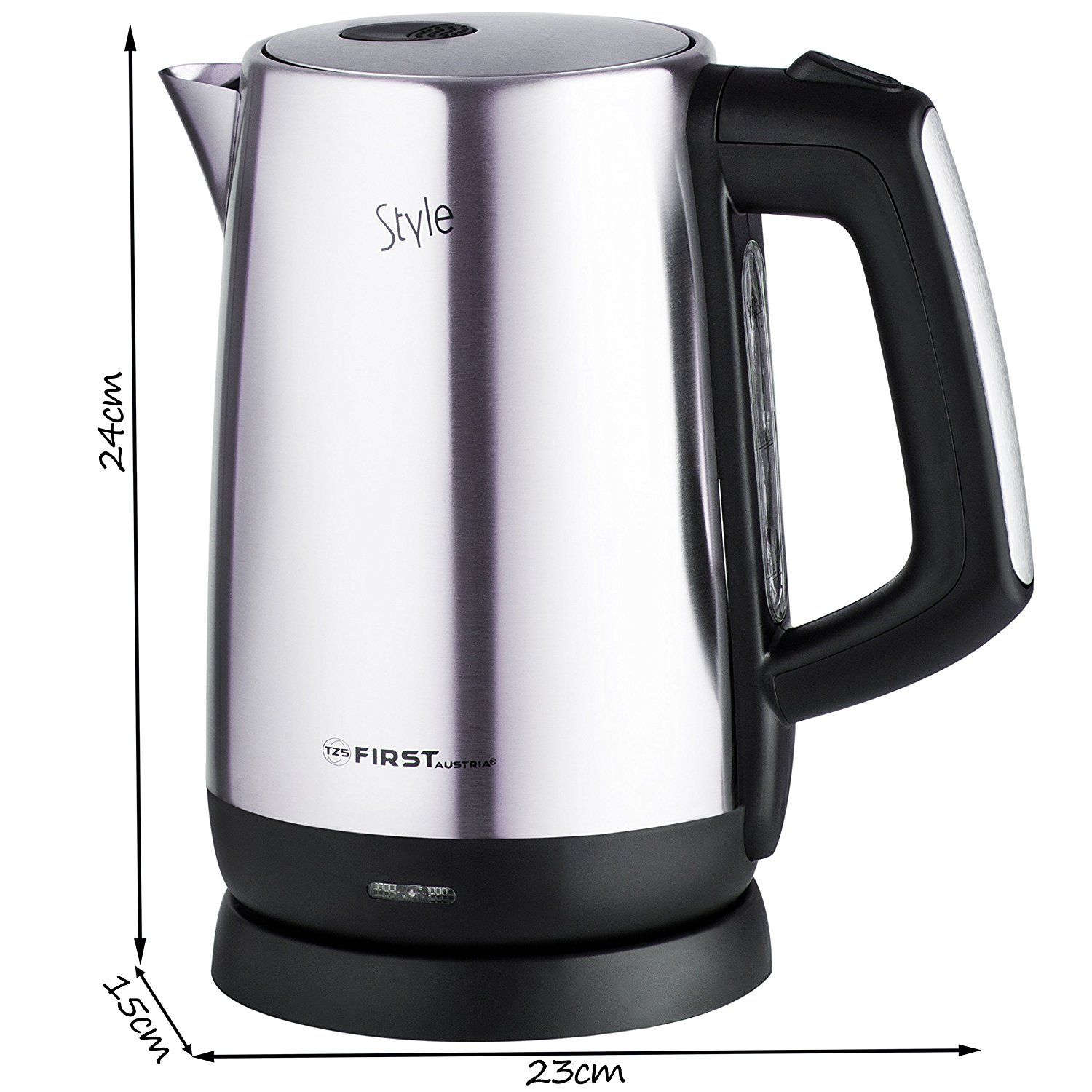 Непідвладний часу дизайн і зручний в експлуатації: бездротовий чайник з матової нержавіючої сталі завдяки гармонійному дизайну вписується як в сучасну, так і в класичну кухню. Маючи ємність 1,7 літра, він за один прийом постачає навіть великі сім’ї водою для заварювання чаю, кави, снеків для заварювання або дитячого харчування. Що вам сподобається: практичний кут установки 360 °. Це дозволяє легко розмістити глечик на станції з усіх боків. У комплект входить носик без крапель, індикатор рівня води, що легко читається, фільтр від накипу, проста у догляді основа з нержавіючої сталі з прихованим нагрівальним елементом і автоматичне відключення із захистом від википання.