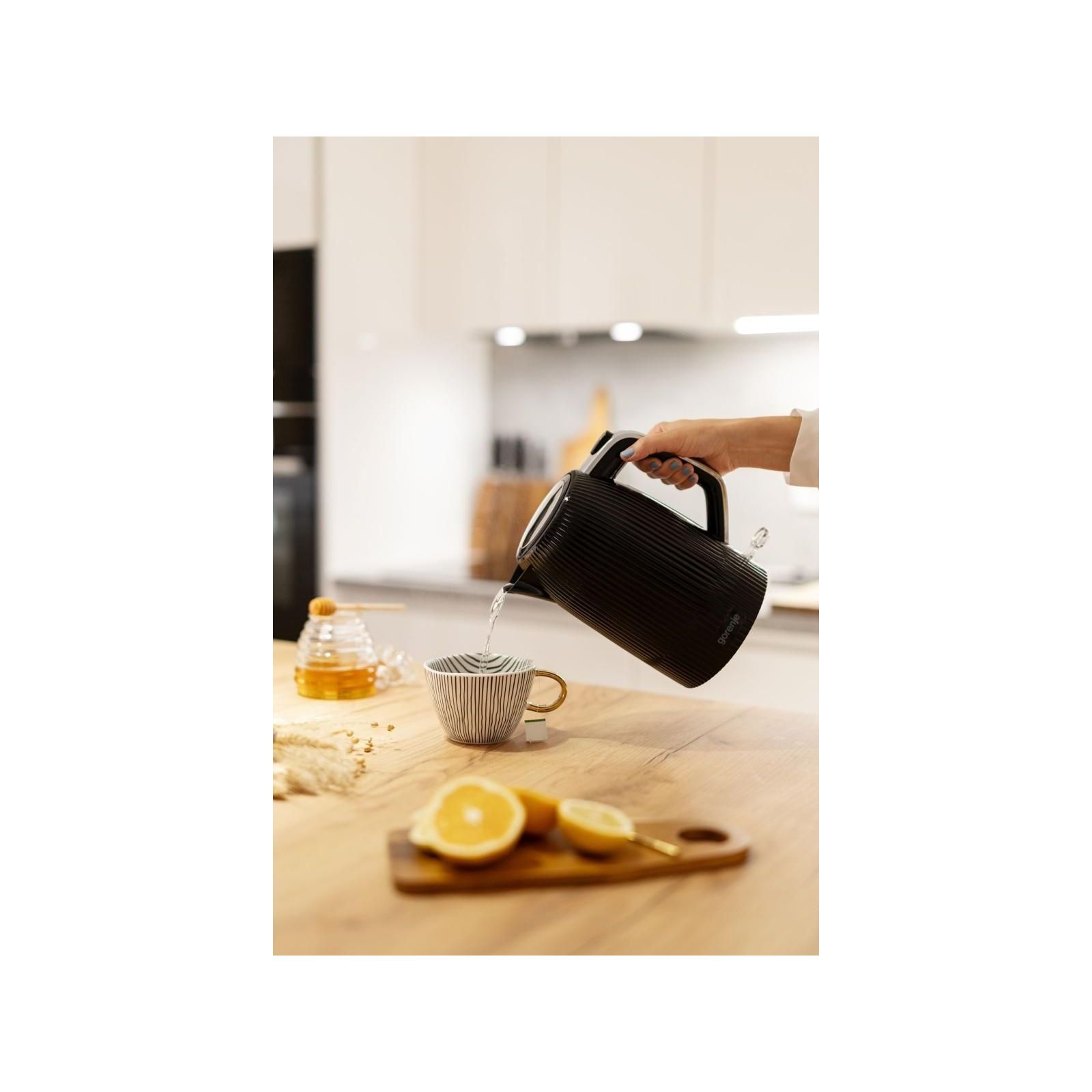 Електрочайник K17DPB від відомого виробника Gorenje стане незамінним помічником у щоденних ритуалах приготування смачного чаю чи ароматної кави. Він містить до 1.7 л рідини, чого вистачить для повсякденного використання всією родиною. Вода в чайнику нагрівається рівномірно і швидко, пристрій працює тихо, а значить може використовуватися і вдома, і в офісі.