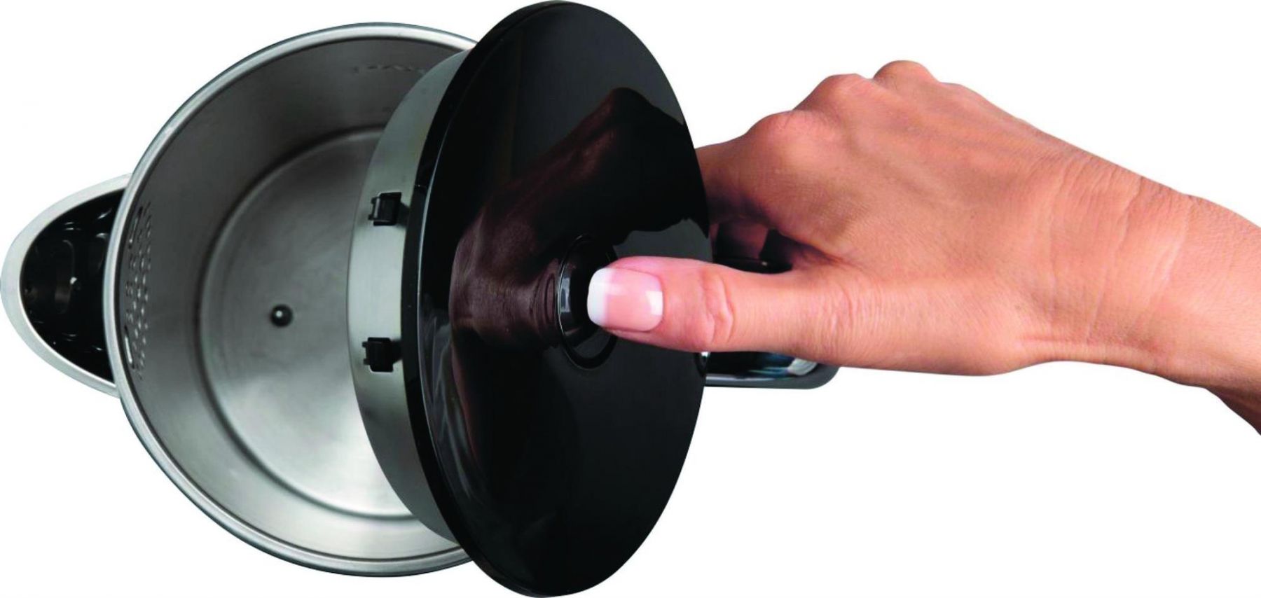 Запашний чай або ароматну каву можна приготувати однією рукою. Відкрийте кришку, просто натиснувши пальцем на кнопку. І не потрібно турбуватися про опіки, адже кнопка завжди залишиться холодною.