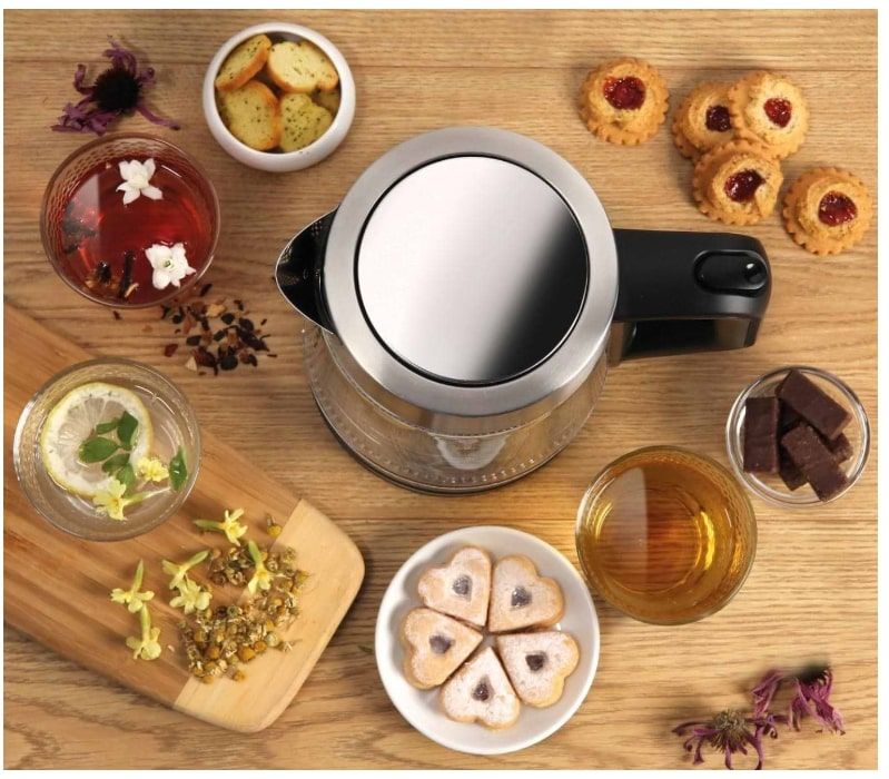 У ньому використовується нагрівальний елемент дискового типу (прихованого) потужністю 2200 Вт. Модель розрахована на разову заливку 1,7 л води, рівень якої візуально контролюється користувачем. Під час розливу рідина пропускається через фільтр, що затримує тверді частинки накипу. Пристрій встановлюється на підставку з центральним контактом, тому може вільно повертатися на 360 градусів. Пристрій має індикатор увімкнення, що спалахує в разі під’єднання до мережі.