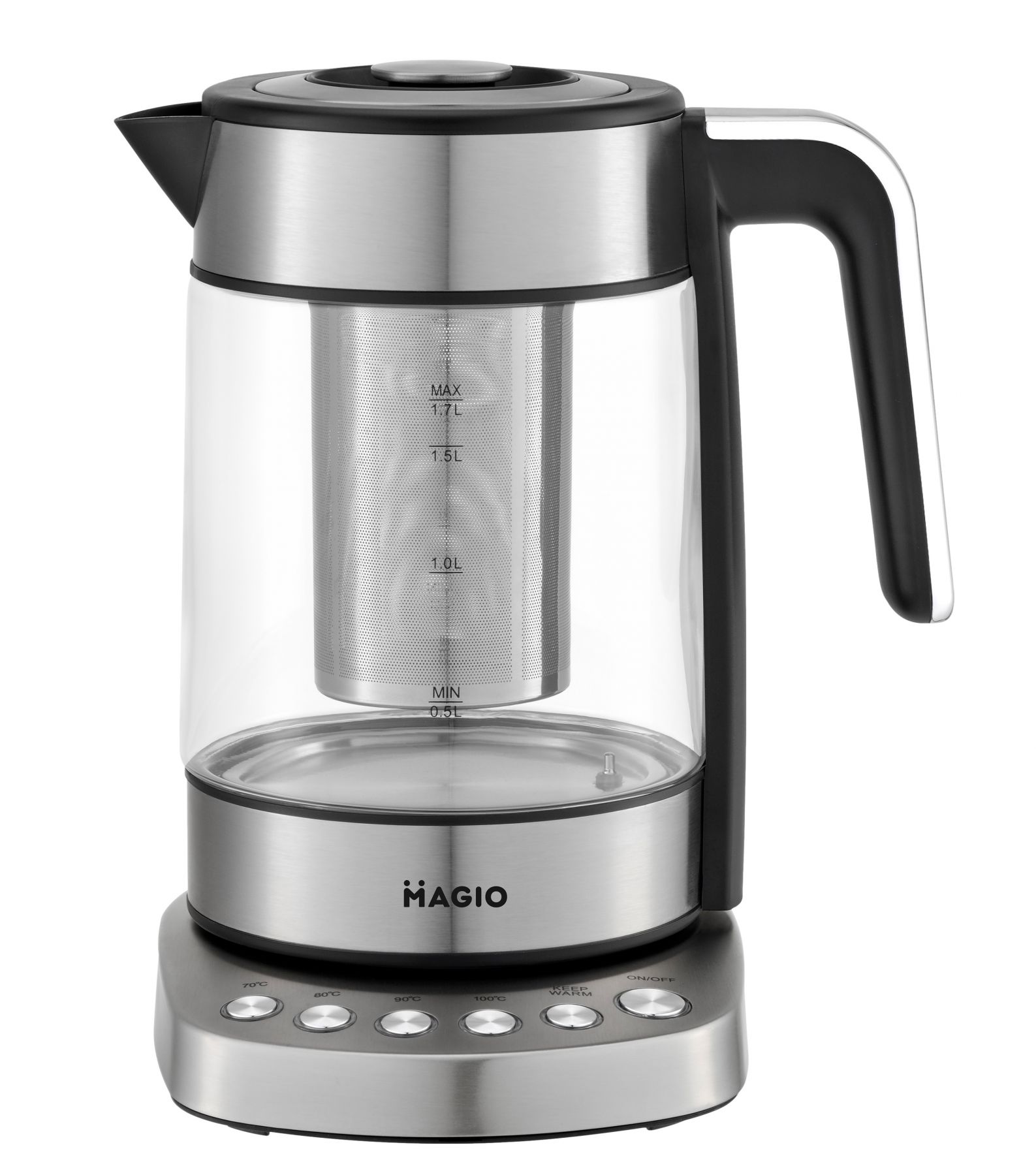 Електрочайник Magio MG-494 - це потужний та зручний електричний чайник з корпусом із високоякісного пластику. З потужністю 1850 Вт він швидко закип’ятить воду, при тому, що вміщує ця модель цілих 1,7 літрів, чого цілком достатньо для сім’ї. Індикатор рівня води дозволяє контролювати кількість води у чайнику. Для зручності він повертається на підставці на 360 градусів. Технічними перевагами електрочайника Magio є наявність фільтра від накипу, візуальний індикатор рівня рідини в приладі та опція автоматичного відключення після закипання. Чайник легко очищається за допомогою вологої губки чи серветки.
