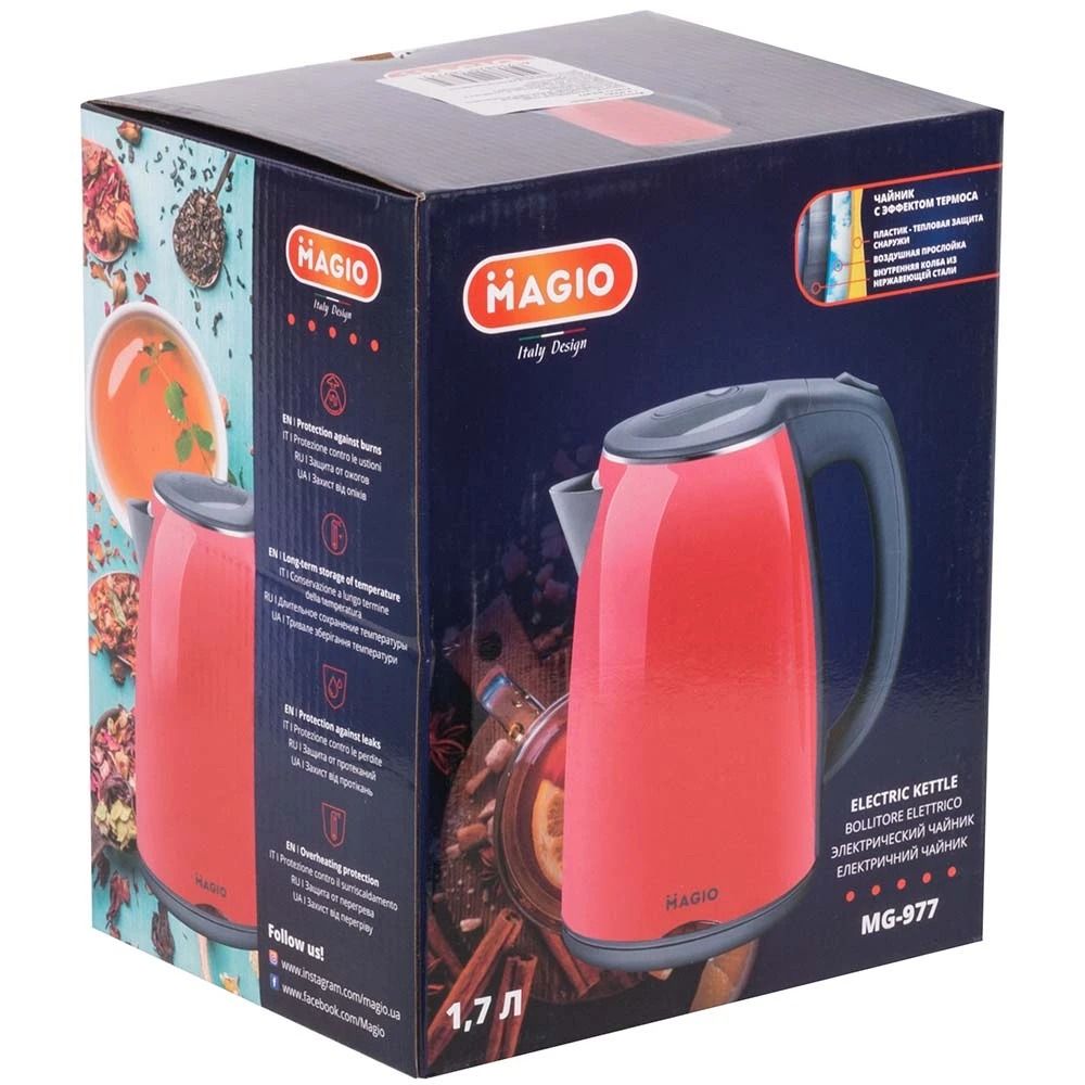 Електрочайник MAGIO об’ємом 1,7 л поєднує стильний дизайн з чудовою якістю і довговічністю.