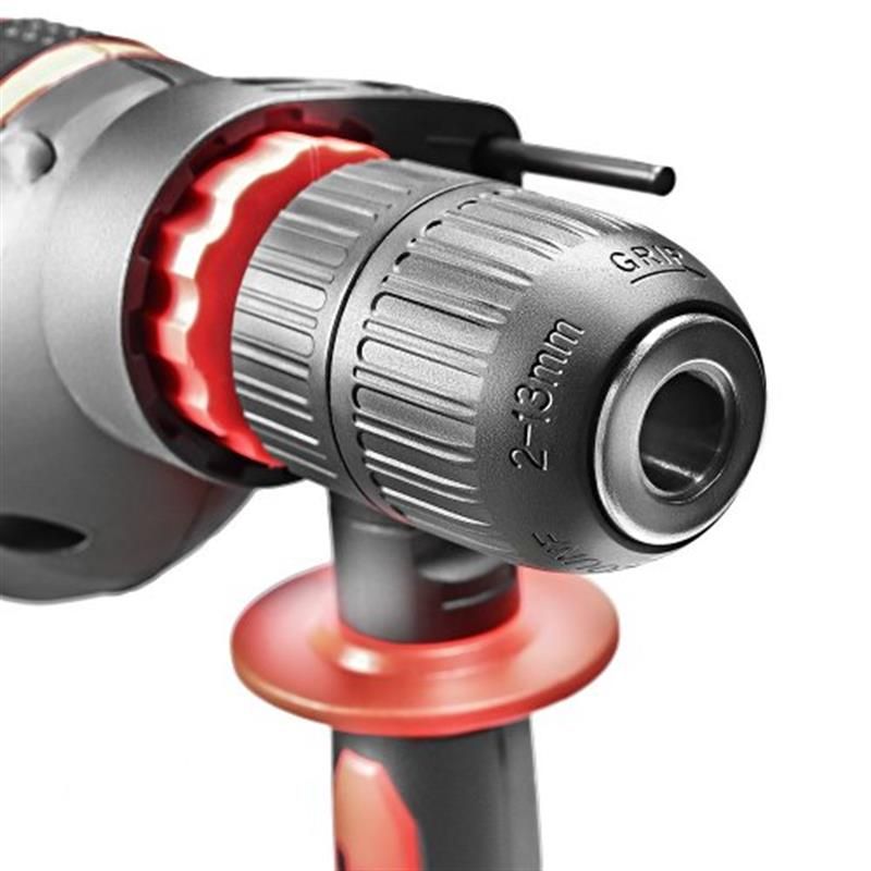 обладнаний швидкозажимним патроном, завдяки якому швидко змінюються свердла для свердління отворів різного діаметру і роботи з різними матеріалами;