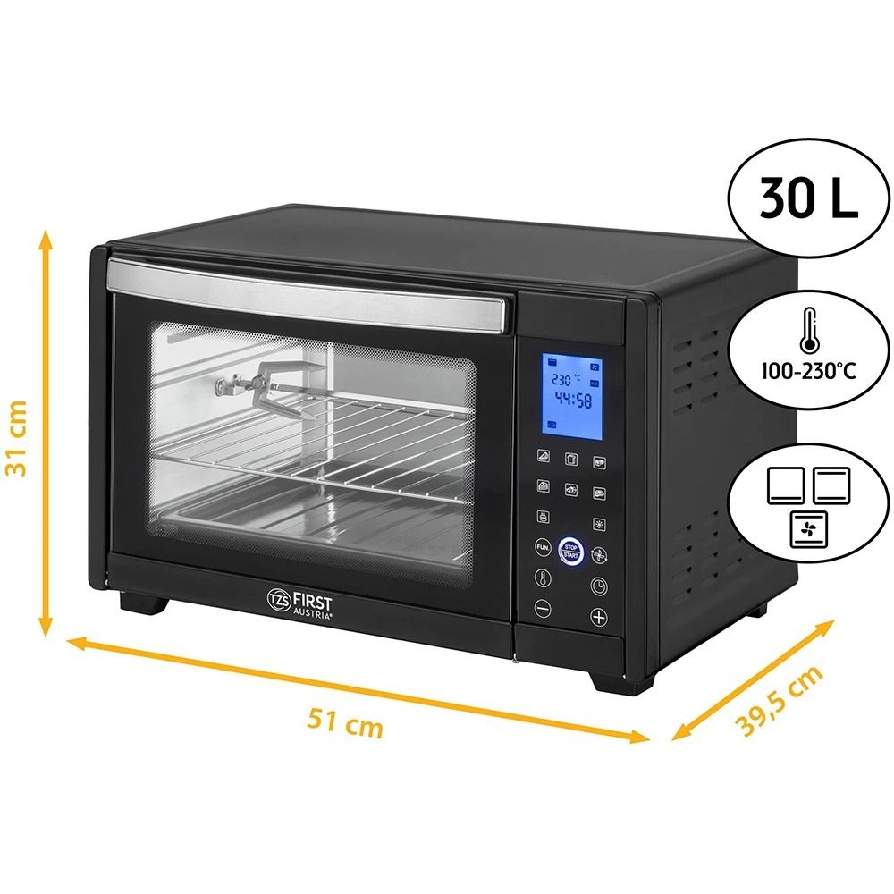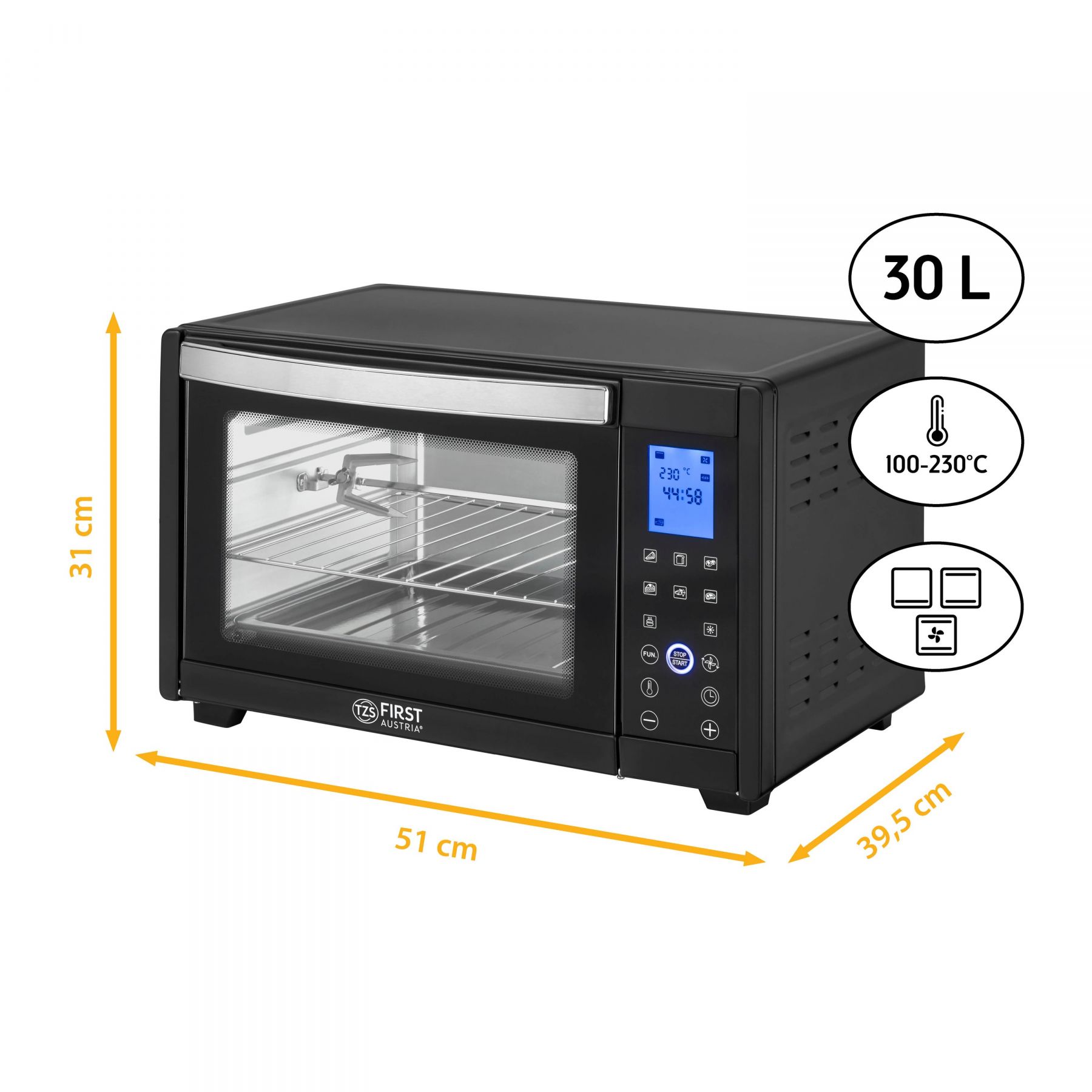 Уся чорна, загострена з оздобленням з нержавіючої сталі, компактна міні-духовка з внутрішнім освітленням і плавним регулюванням температури до 230° не тільки виглядає добре, але й економить час і нерви під час приготування. Запікати, смажити на грилі, смажити, смажити - все вдається без особливих зусиль. Ви також економите гроші порівняно зі звичайними духовками: мінідуховка в рази енергоефективніша.