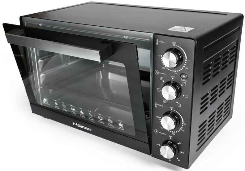 Функціональна електрична піч допоможе приготувати різноманітні страви: соковиті овочі-гриль, запекти рибу, м’ясо або апетитну курку на вертелі, з ароматною хрусткою скоринкою. Дана модель має кілька режимів приготування: гриль, вертел, випічка і запікання. Holmer HEO-152CR готує швидко і смачно улюблені страви, не витрачаючи багато часу на їх створення. Піч може не тільки запікати, робити кулінарну випічку і готувати страви на грилі, але і розігрівати вже приготовлені.