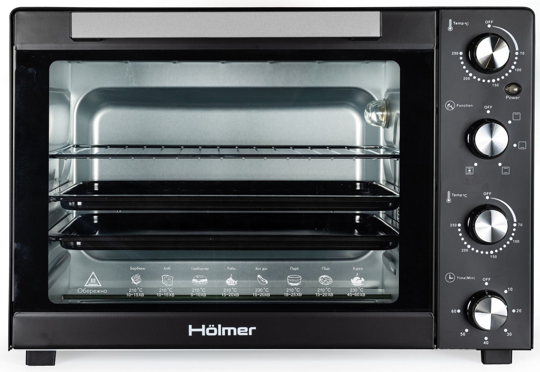 Процес випічки в печі Hölmer HEO-162CL, з функцією «підсвічування» не вимагає постійного контролю. Досить вибрати один з варіантів нагріву, необхідного для приготування страви та встановити таймер (до 60 хвилин).