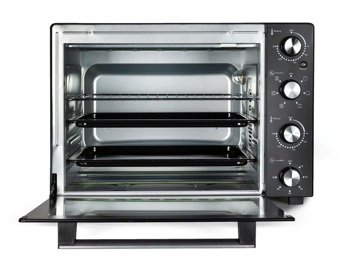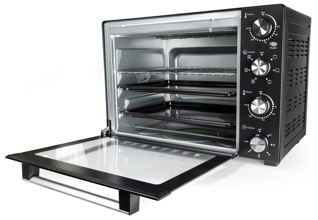 На лицьовій панелі електропечі розташований механічний регулятор температури. Термостат дає змогу встановлювати температуру від 100°С до 250°С. Така можливість налаштування теплового режиму дає змогу готувати страви як за сильного нагрівання (за 250°С), так і за легкого термічного впливу. Страви не пригорають навіть при високій температурі, оскільки гаряче повітря всередині печі розподіляється рівномірно.