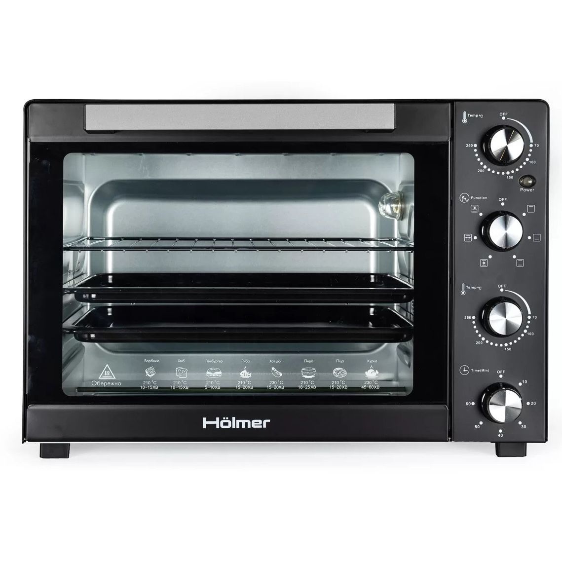 Hölmer HEO-162CRL - це дуже містка модель електричної печі, зі значним об'ємом камери 61 літр і потужністю 1900 Вт. Дає змогу готувати на трьох рівнях. Оснащена внутрішнім підсвічуванням, механічним керуванням і таймером (з автовідключенням), а також різноманітними режимами приготування на вибір: гриль, рожен, запікання, випічка.