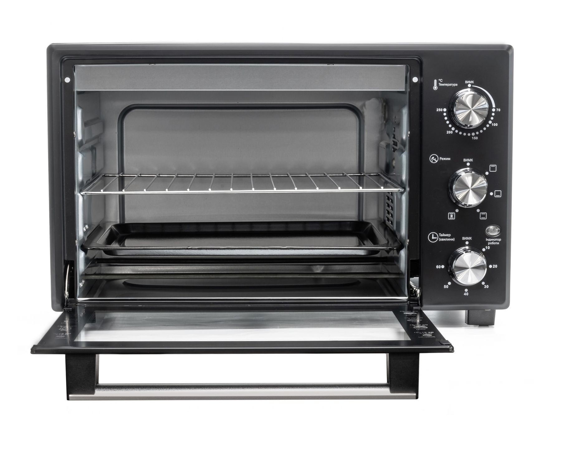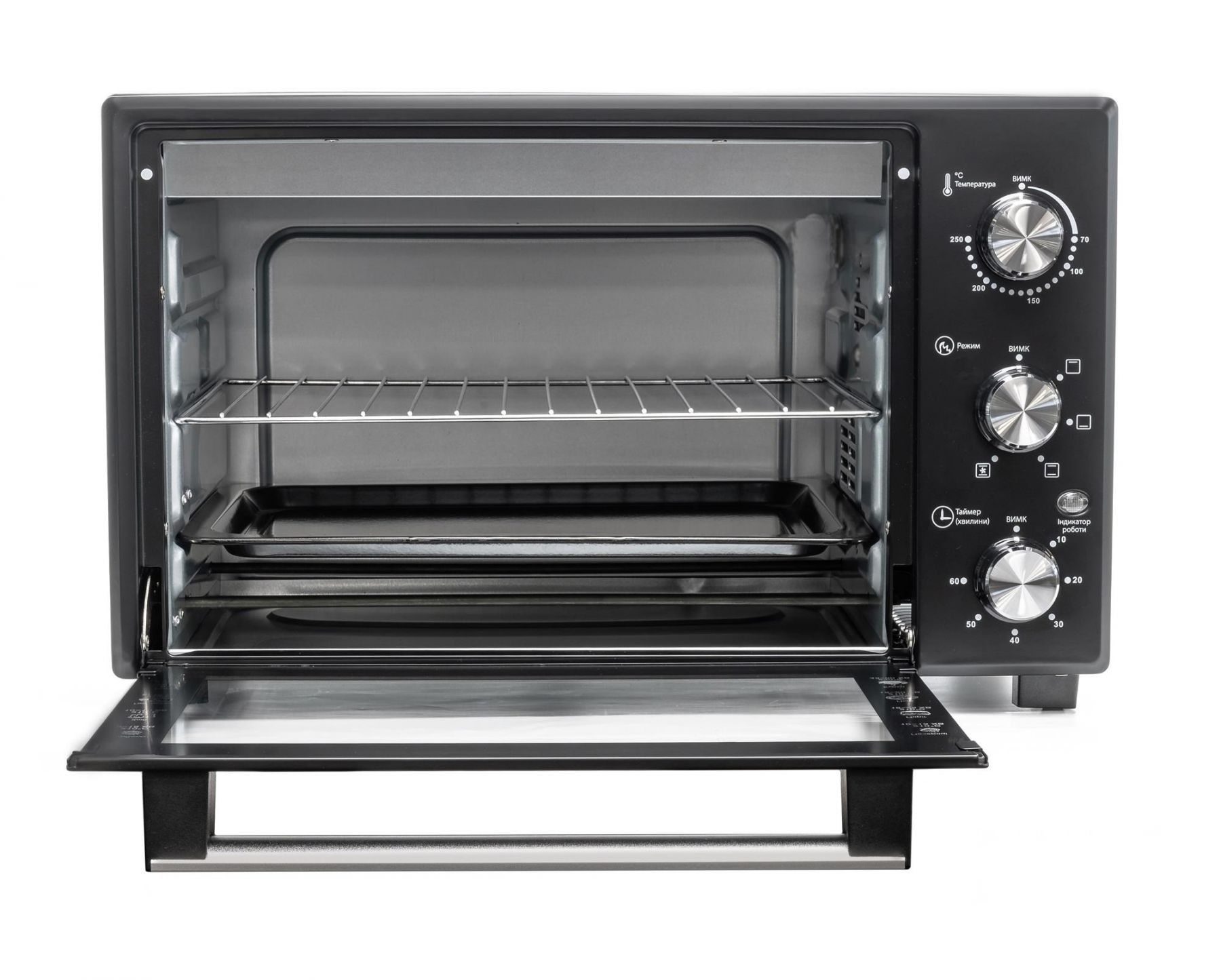 На лицьовій панелі електропечі розташований механічний регулятор температури. Термостат дозволяє встановлювати температуру від 70°С до 250°С. Гаряче повітря всередині печі розподіляється рівномірно, не даючи страві пригоріти, навіть при найвищій температурі. Функція настройки теплового режиму дозволяє якісно обробляти продукти, як при сильному нагріванні (при 250°С), так і при легкому термічному впливі.