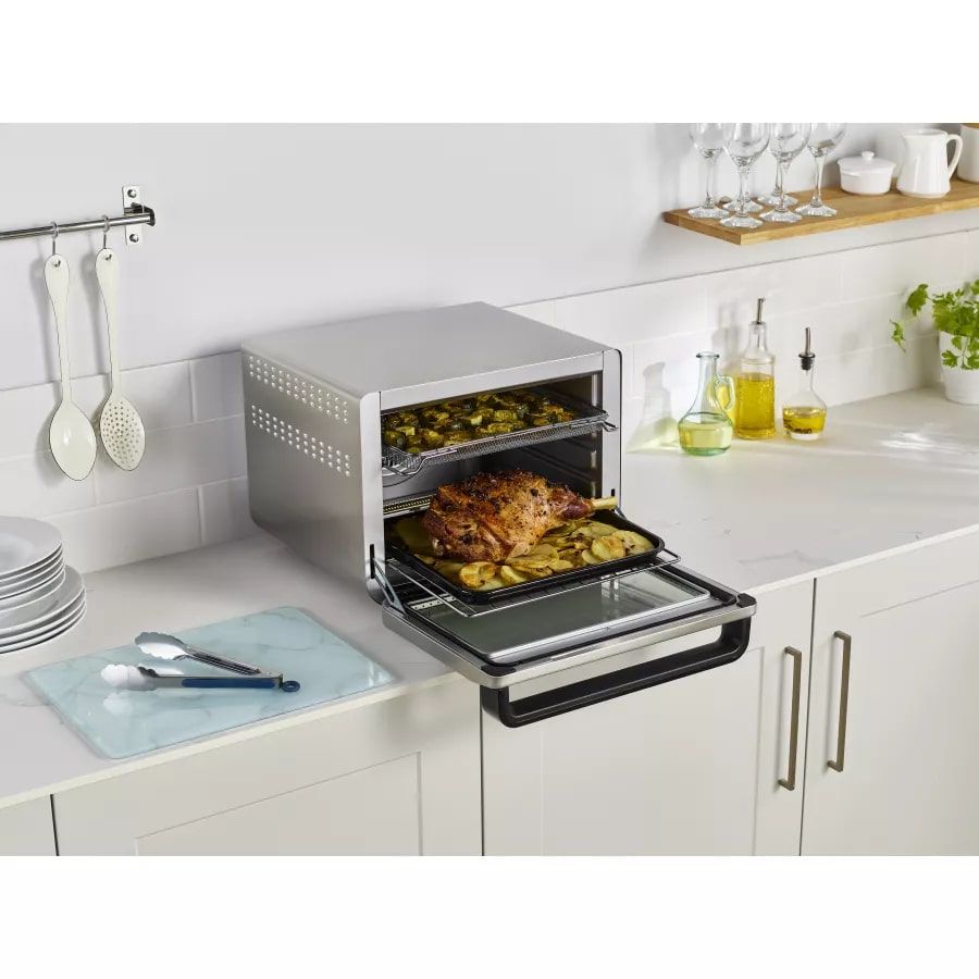 Не завдайте собі клопоту зайвий раз помішувати смажену картоплю або обертати курку. Вона і без цього запечеться з усіх боків з об’ємною конвекцією, адже нагріте повітря рівномірно циркулюватиме, а нагрівальні елементи знизу і вгорі підтримуватимуть діапазон температури від 40 до 230°C.