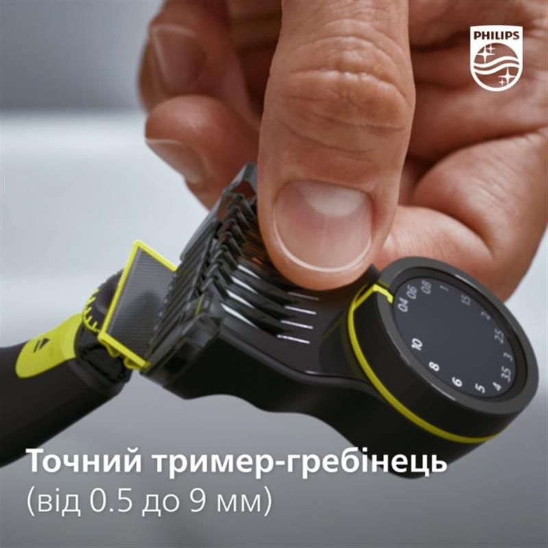 Для комфорту використання OneBlade не голить так близько до шкіри, як звичайне лезо, і з ним можна легко голити волосся будь-якої довжини навіть проти його росту.