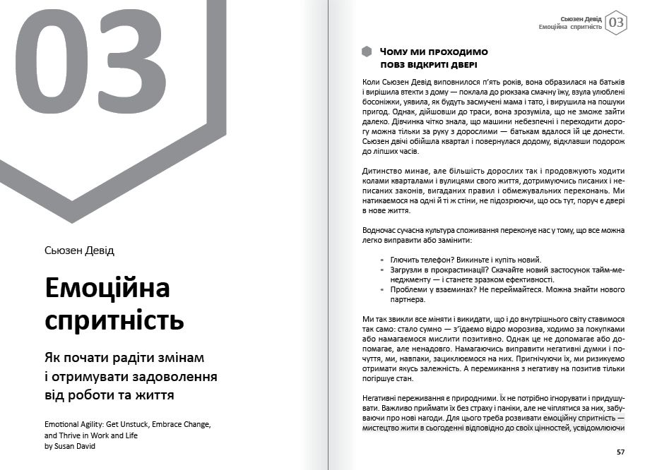 Ця книжка —збірка саммарі 12 світових бестселерів про емоції і емоційну гнучкість, яка допоможе давати лад неприємним почуттями і виходити з конфліктних ситуацій, жити в гармонії з власними емоціями і оточенням, знаходити підхід до рідних і колег, але головне — мати такий підхід до самого себе.