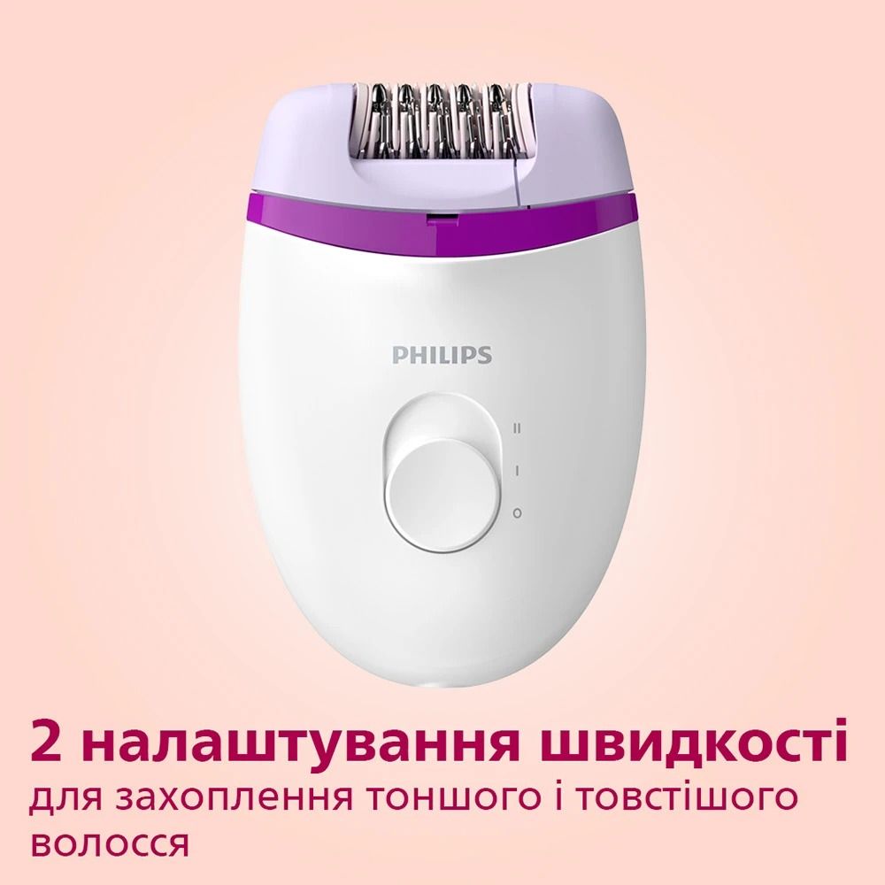 Ергономічний дизайн. Завдяки закругленою формі ручка зручно лежить в руці, забезпечуючи комфорт при видаленні волосся, а також чудово виглядає! Ефективна система епіляції. Завдяки ефективній системі епіляції шкіра залишається гладкою і шовковистою протягом декількох тижнів. Зміни головок можна мити Епілятор оснащений миється голівкою. Її можна зняти і промити під струменем води, що забезпечує максимальну гігієну. 2 режиму швидкості 2 режиму швидкості для видалення тонких і товстих волосків.