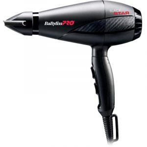 BaByliss PRO BAB6200E Black Star - професійний фен для волосся з нової серії Black Star від BaByliss PRO. Відмінною особливістю нової серії фенів є підвищений захист від намотування волосся на вісь мотора, що підвищує надійність і довговічність інструменту. При цьому BAB6200E проводиться повністю в Італії, обладнаний надійним і продуктивним мотором в компактному і ергономічному корпусі, що робить цей новий фен бажаним інструментом для більшості професійних стилістів і побутових користувачів.