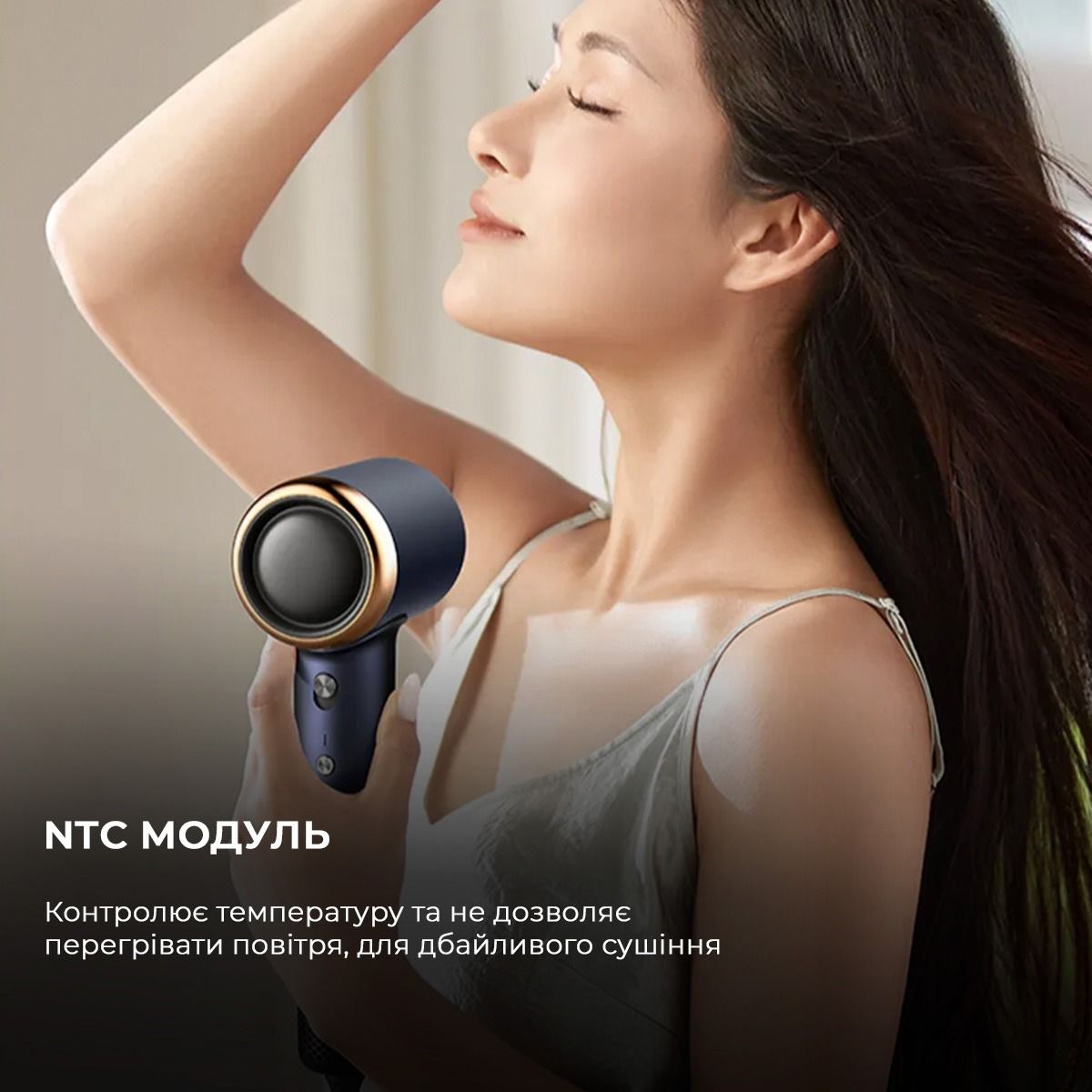 Інше:11 додаткових режимів, захист від перегріву, безщитковий двигун зі швидкістю 120 000 об/хв для потужної циркуляції високошвидкісного повітряного потоку; повітря викидається під тиском із швидкістю до 70 м/с; магнітна вішалка дозволяє зручно зберігати пристрій; магнітна насадка з можливістю обертання на 360 ° 6-шарова технологія шумоподавлення ( рівень шуму всього близько 56 дБ)