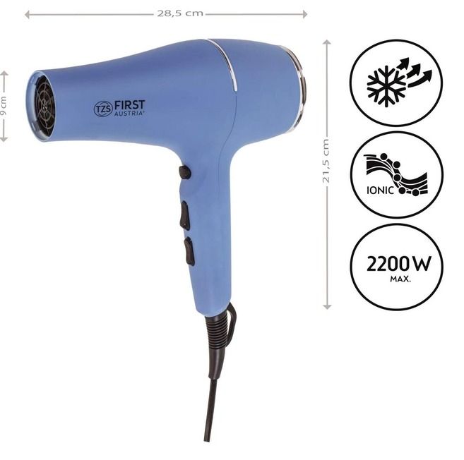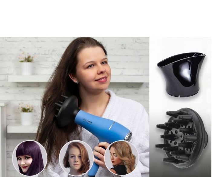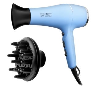 Фен First FA-5654-7 BU простий у застосуванні. Даний прилад оснащений технологією іонізації, яка забезпечує подачу негативно заряджених іонів під час сушіння. Вона дозволяє зняти електростатичну електрику з волосся для легшого укладання.