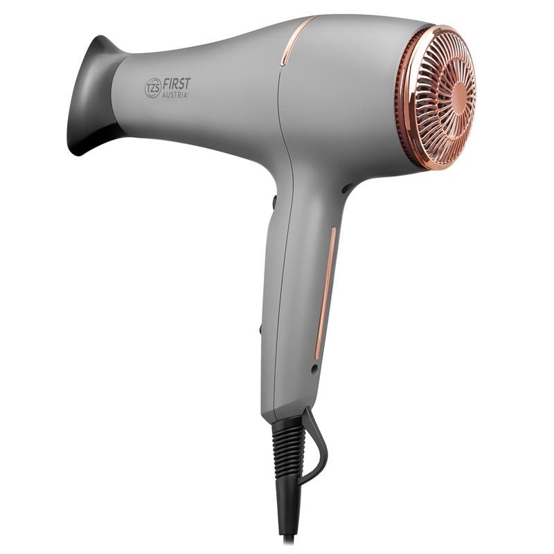Фен First FA-5654-7-GR простий у застосуванні. Даний прилад оснащений технологією іонізації, яка забезпечує подачу негативно заряджених іонів під час сушіння. Вона дозволяє зняти електростатичну електрику з волосся для легшого укладання.