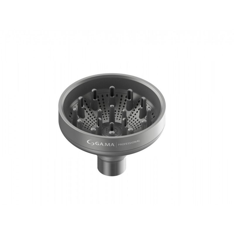Фен GAMA IQ3, як і колишня модель, комплектується трьома насадками: 2 вузькими концентраторами (ширина 108 і 81 мм), концентратор-зірка та оновленою насадкою-дифузором. Всі насадки оснащені зоною, що не нагрівається на кільцях, а так само мають нову систему кріплення. Якщо попередні насадки фіксувалися з допомогою конусної конструкції, то фені IQ3 насадки мають спеціальний фіксатор, який надійно утримує під час роботи. Усі насадки можуть обертатися на 360 градусів.