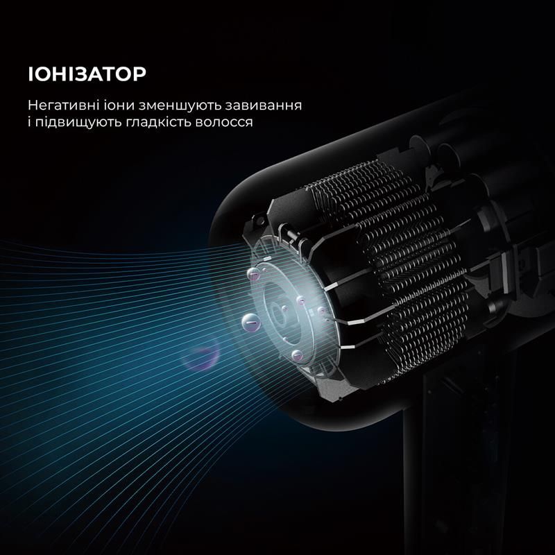 Неперевершений високошвидкісний двигун із цифровим керуванням створює потужний повітряний потік до 18 л/с, швидко сушить волосся, зменшуючи шум та тертя.