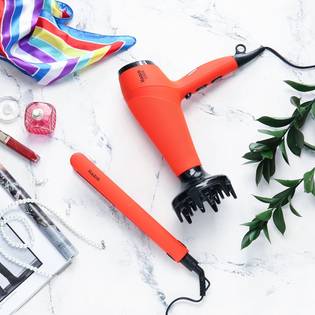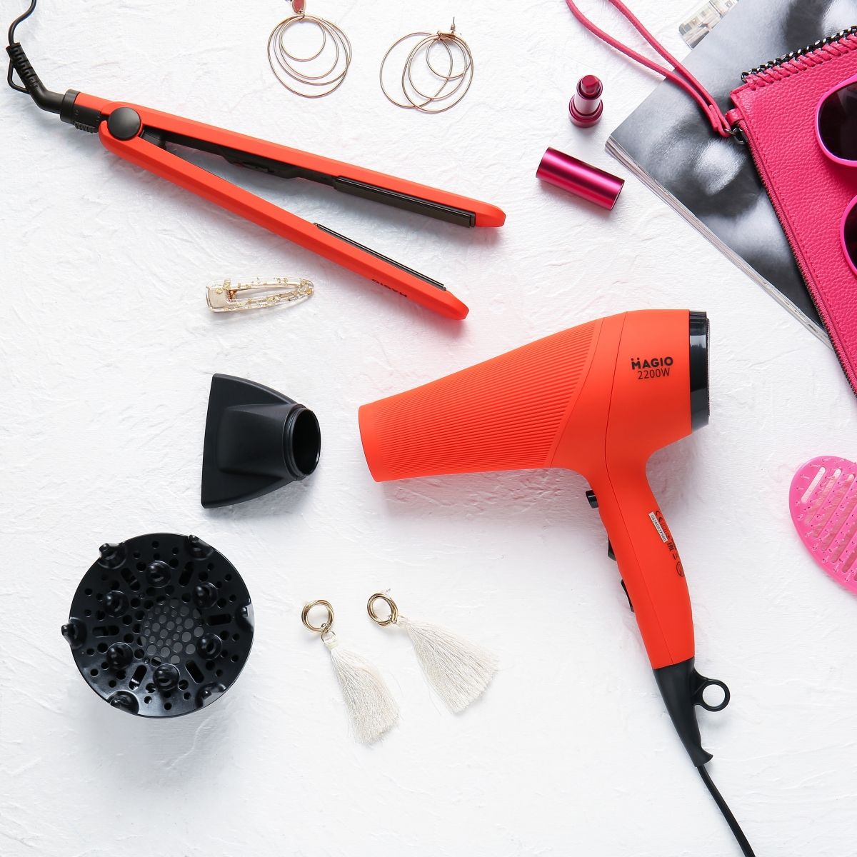 В своєму арсеналі фен має дві насадки – концентратор та дифузор. Концентратор дає можливість швидко розігріти конкретну прядку, при цьому гаряче повітря майже не грітиме вже укладені та охолоджені прядки, що позитивно впливає на стан волосся та якість укладки. А насадка дифузор – це незамінний інструмент для приголомшливих локонів, якщо у Вас кучеряве волосся. Саме через свою форму, яка забезпечує розсіювання гарячого повітря, дифузор не направляє повітряний потік прямо на кучері, а навпаки – дбайливо циркулює навколо них. Завдяки цьому форма завитка зберігається, а волосся стає менш схильним до пошкодження та ламкості. Як результат – здорові та доглянуті локони без розпушування.