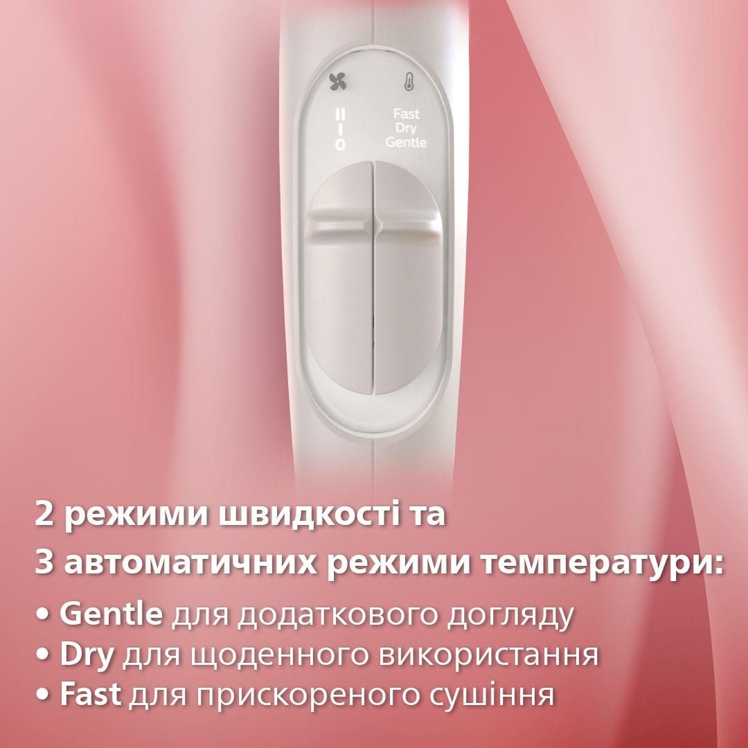Фен з технологією SenseIQ адаптує температуру повітряного потоку близько 4000 разів за сеанс сушіння та запобігає перегріванню волосся.