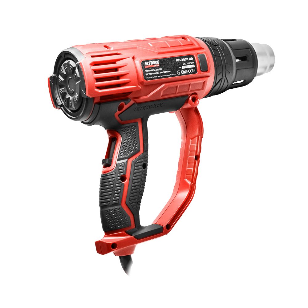 Stark HG-2003RD – технічний фен для використання при будівельних і ремонтних роботах для сушіння, нагрівання поверхонь, для термоусадки, для надання форм матеріалам, що плавляться, для зняття лакофарбових матеріалів.