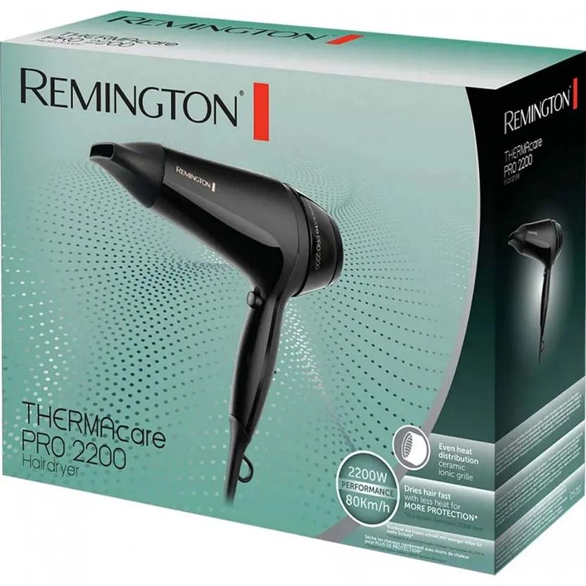 Фен Remington D5710 має потужність 2000 Вт і швидкість повітряного потоку 80 км / год. Модель має керамічні грати (для рівномірного розподілу тепла по волоссю), 3 температурні і 2 швидкісні режимами, а також подачу холодного повітря. Цей фен з легкістю допоможе вам створити неперевершену укладку. Для більшої зручності D5710 оснащений знімною задньою гратами і петлею для підвішування.