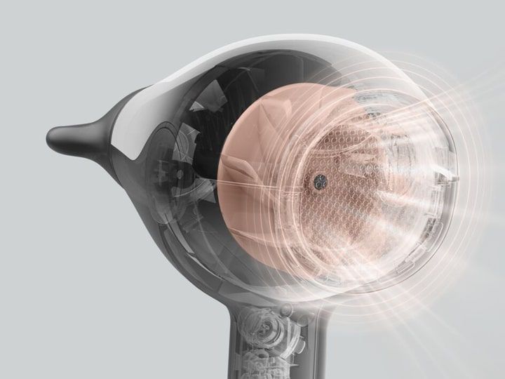 Цей високопродуктивна модель з потужністю 2100 ЕВт для потужного повітряного потоку, а покращений мотор забезпечує безшумність роботи фена на рівні 66,5 дБА – рівень, який ледь перевищує рівень повсякденної розмови.