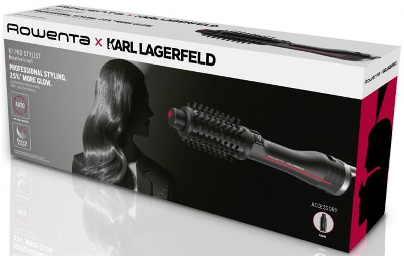 Фен-щітка Rowenta KARL LAGERFELD K/ PRO STYLIST CF961LF0. Фен, що обертається - щітка з гарячим повітрям Rowenta x KARL LAGERFELD K/Pro Stylist CF961LF0 дозволяє легко застосовувати професійні техніки укладання феном в домашніх умовах. Укладання салонного рівня у домашніх умовах. Фен-щітка, що обертається, повторює рухи професійних стилістів, забезпечуючи чудовий результат. Ексклюзивне покриття Keratin & Glow об’єднує pro-Keratin і турмалін – у поєднанні з іонізацією волосся стає гладким, блискучим, слухняним і менше сплутується.