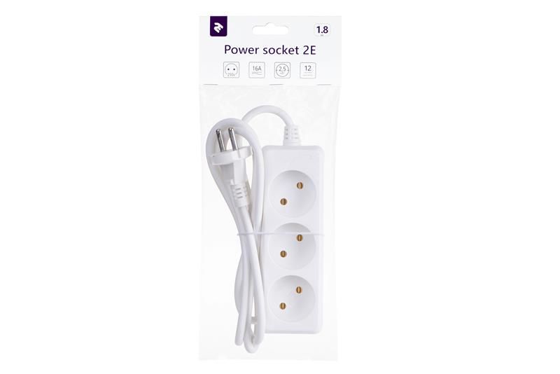 Фільтр живлення 2Е (2E-U03M1.8) 3 розетки, 1.8 м, білий