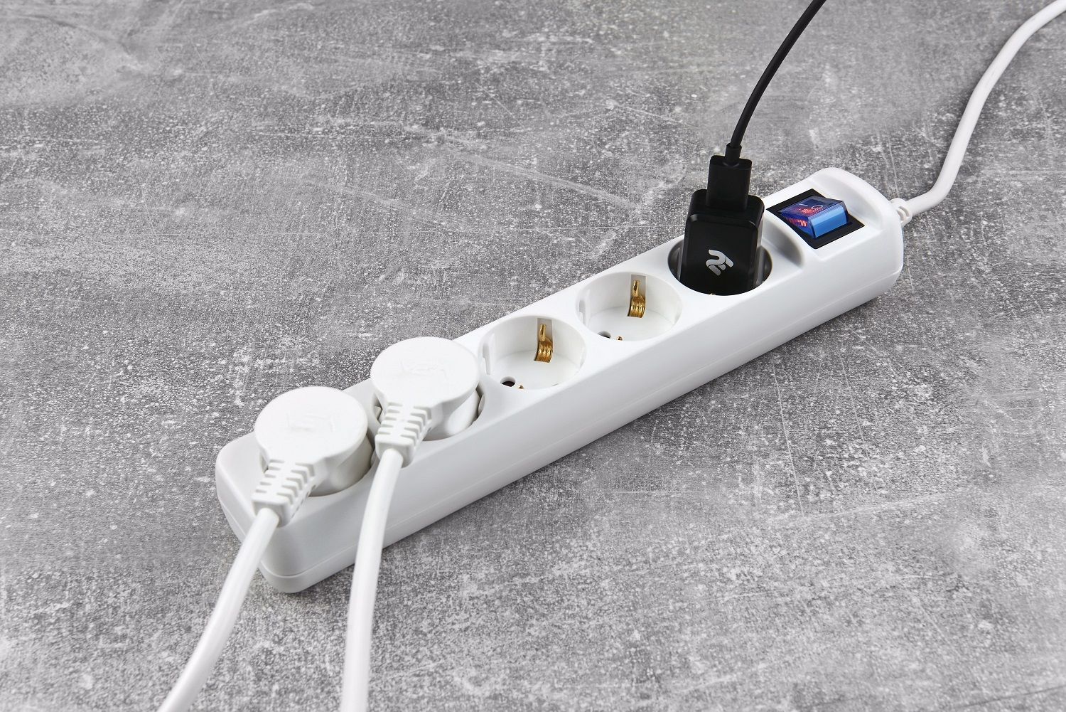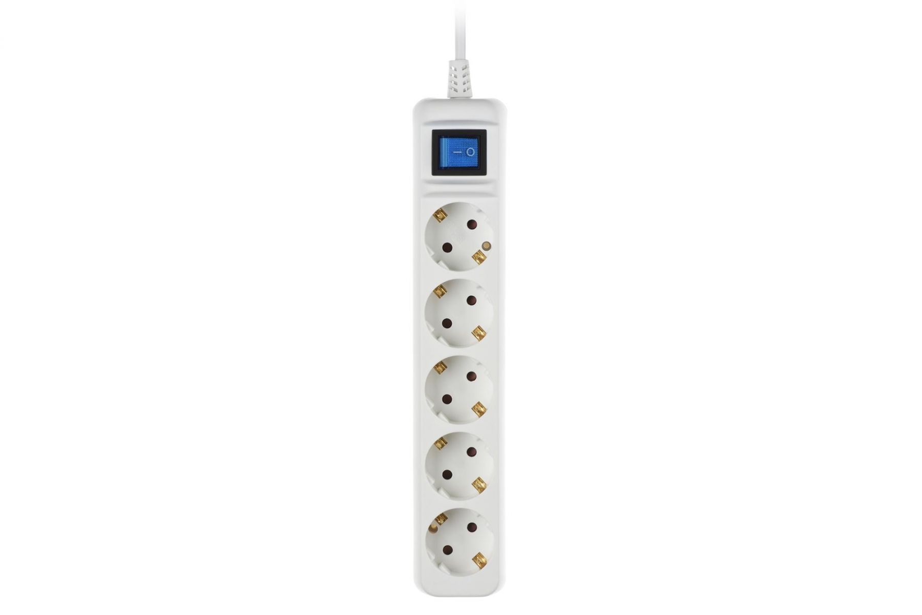 Мережевий фільтр 2Е на 5хSchuko розетки Тип F (євророзетка) із заземленням, з вимикачем, зі шторками для захисту дітей, матеріал провідника: мідь, потужність вихідна макс.- 230В