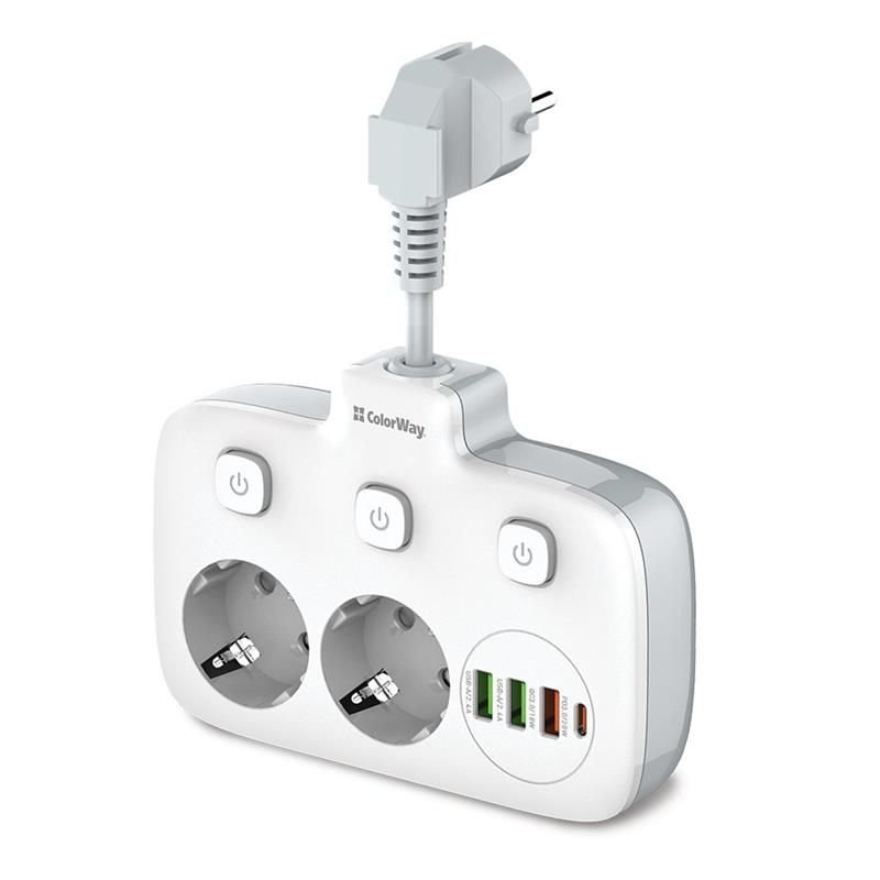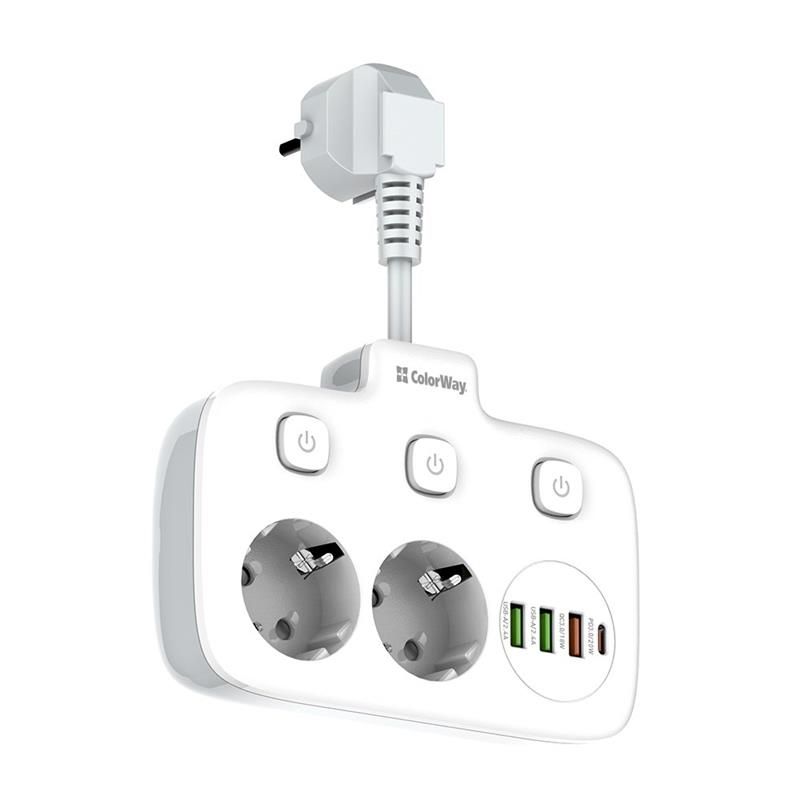 Фільтр живлення ColorWay CW-CHE24PDW 2 розетки, 4 USB, 2.5 cм, білий
