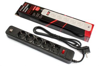 Фільтр живлення FrimeCom (FC-BU4005W 1.8 B) 5 розеток, 2хUSB, 1.8 м, чорний