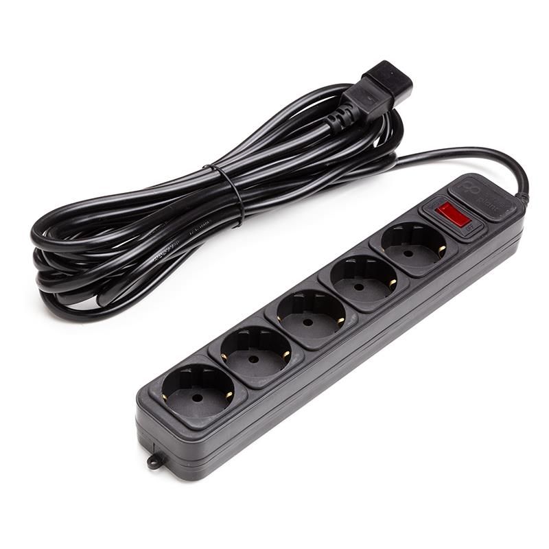 Фільтр живлення PowerPlant (PPUA10M50S5) з кабелем для ДБЖ, 3x1.5мм2, 5 розеток, 5 м, чорний