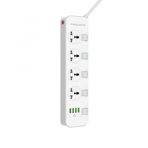 Мережевий фільтр живлення від ProLogix здатен виконати широкий спектр підключень — побутова та електротехніка, чайники, водонагрівачі та ін. Пристрій має 4 універсальні розетки 220 В та 4 USB-порти. Оформлений у білому футуристичному дизайні.