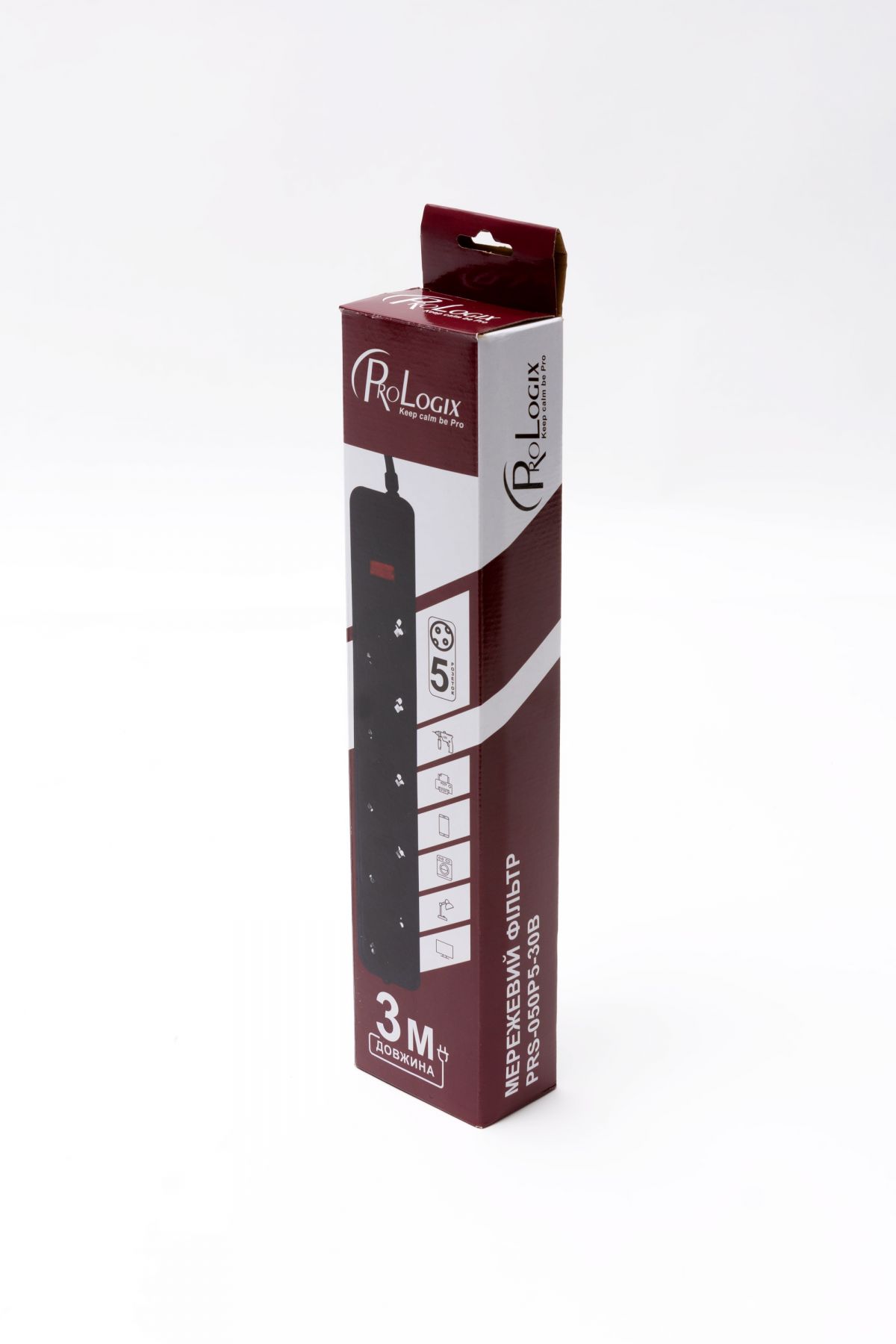 Фільтр живлення PRS-050P5-30B торгової марки ProLogix використовується для підключення побутових приладів, домашньої електроніки та електроінструменту.