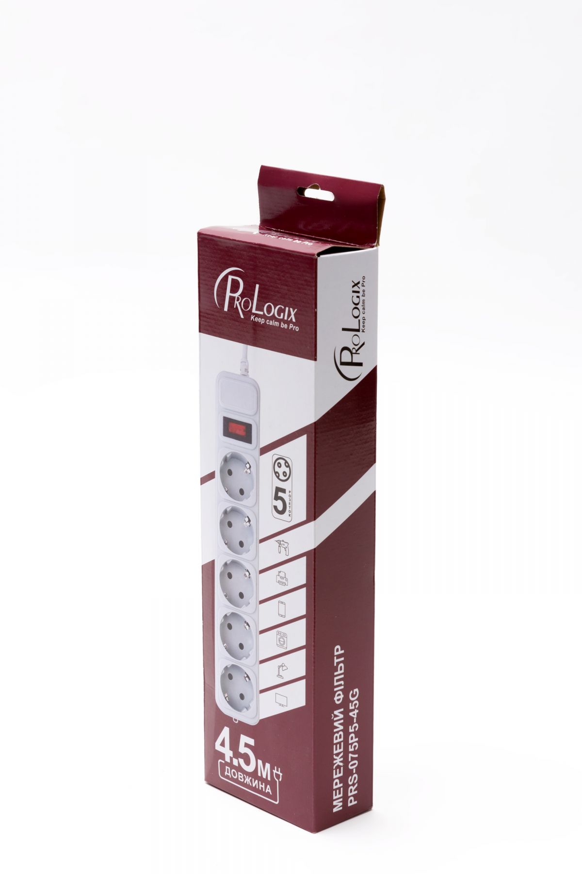 Фільтр живлення ProLogix (PRS-075P5-45G) 0.75 мм, 5 розеток, 4.5 м, сірий