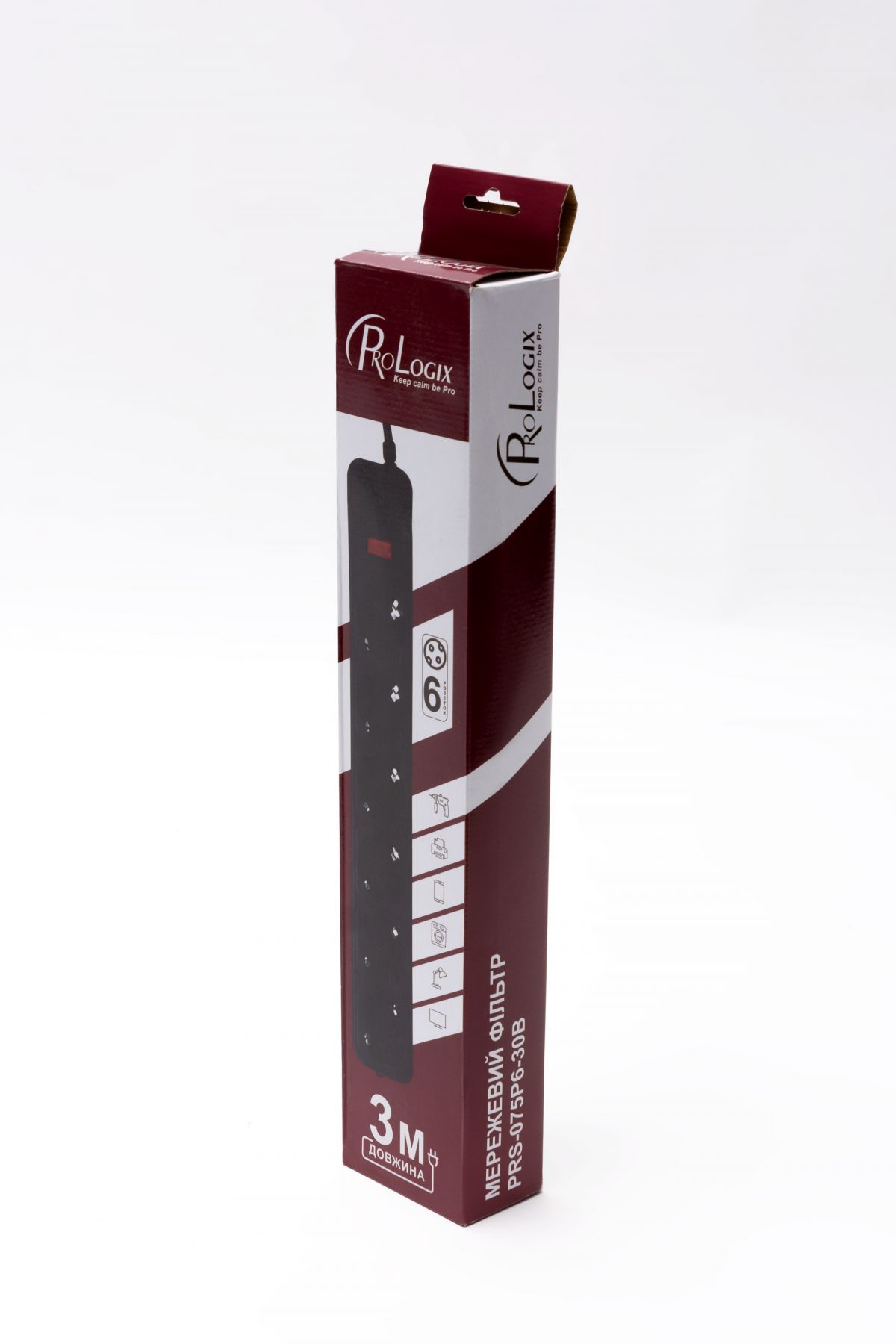 Фільтр живлення ProLogix (PRS-075P6-30B) 0.75 мм, 6 розеток, 3 м, чорний