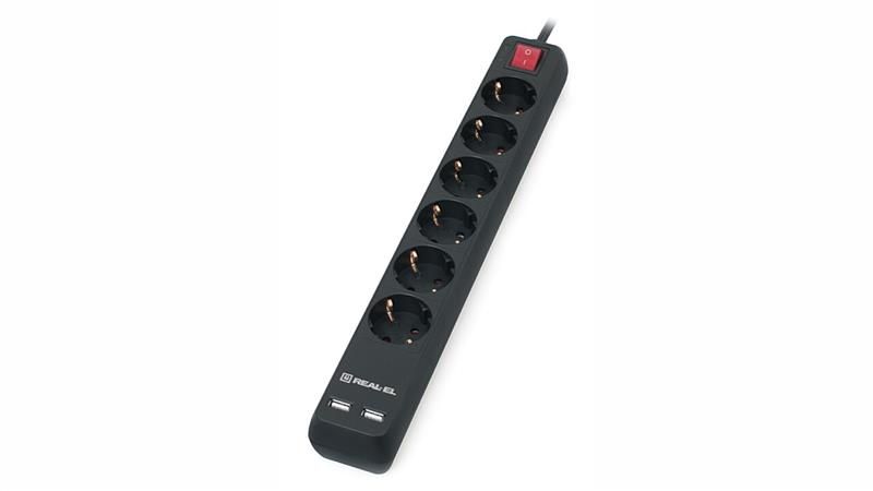 Фільтр живлення REAL-EL RS-6 Protect USB 3m Black