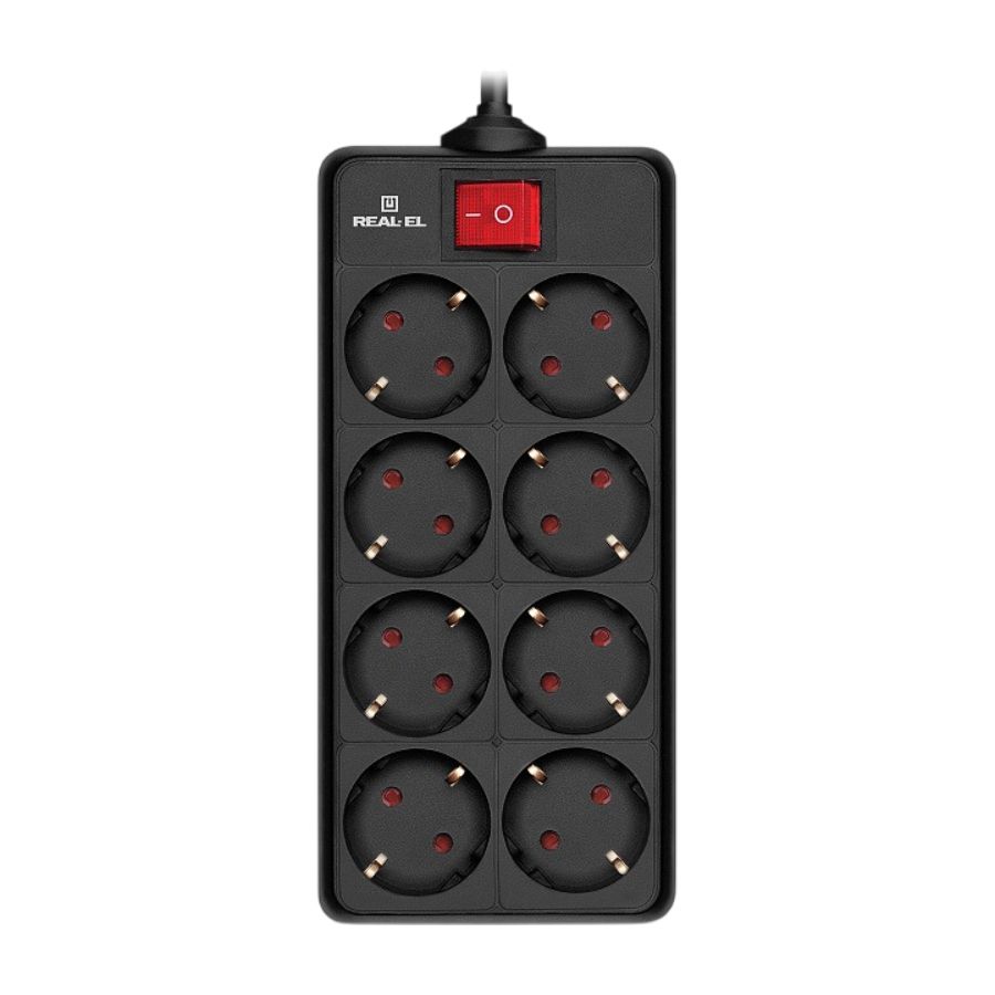 Мережевий фільтр-подовжувач REAL-EL RS-8 Protect призначений для підключення електроприладів до електромережі і забезпечення їх захисту від перевантаження.