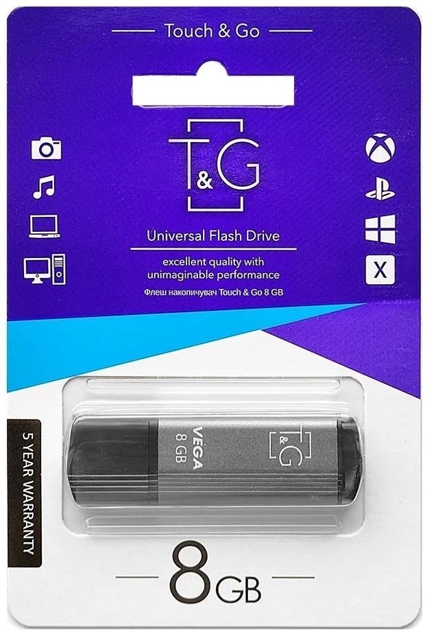 USB Flash - накопичувач T&G 121 Vega series - сумісний з будь-яким зчитувальним пристроєм, оснащеним USB-2.0 портом. Для роботи не вимагає спеціальної установки драйверів.