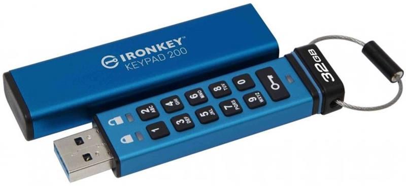 Флеш-накопичувач USB3.2 32GB Kingston IronKey Keypad 200 Type-A Blue (IKKP200/32GB)