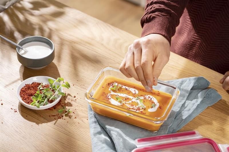 Завдяки інноваційній системі закривання, контейнер не тільки на 100% герметичний, а й на 100% гігієнічний, оскільки відсутні зазори, в яких могли б накопичитися мікроби. Закріплені краї для додаткового захисту від сколів.