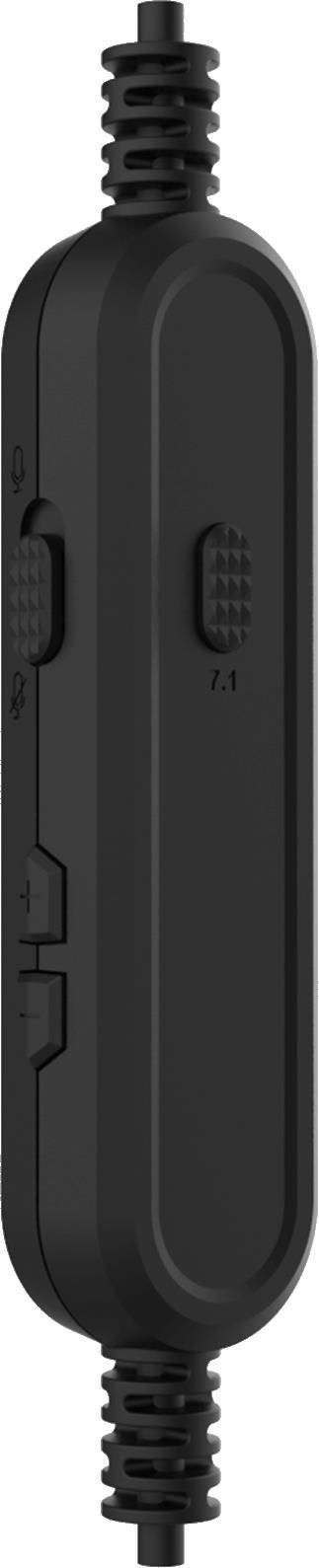 Зручний пульт керування на шнурі дозволяє легко регулювати гучність, а також вмикати та вимикати мікрофон, режим віртуального об’ємного звучання та підсвічування гарнітури.