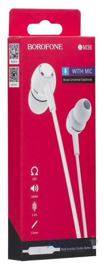 BOROFONE BM36 Acura дротові навушники з мікрофоном, аудіо штекер 3.5мм, керування однією клавішею, кабель 1.2м.