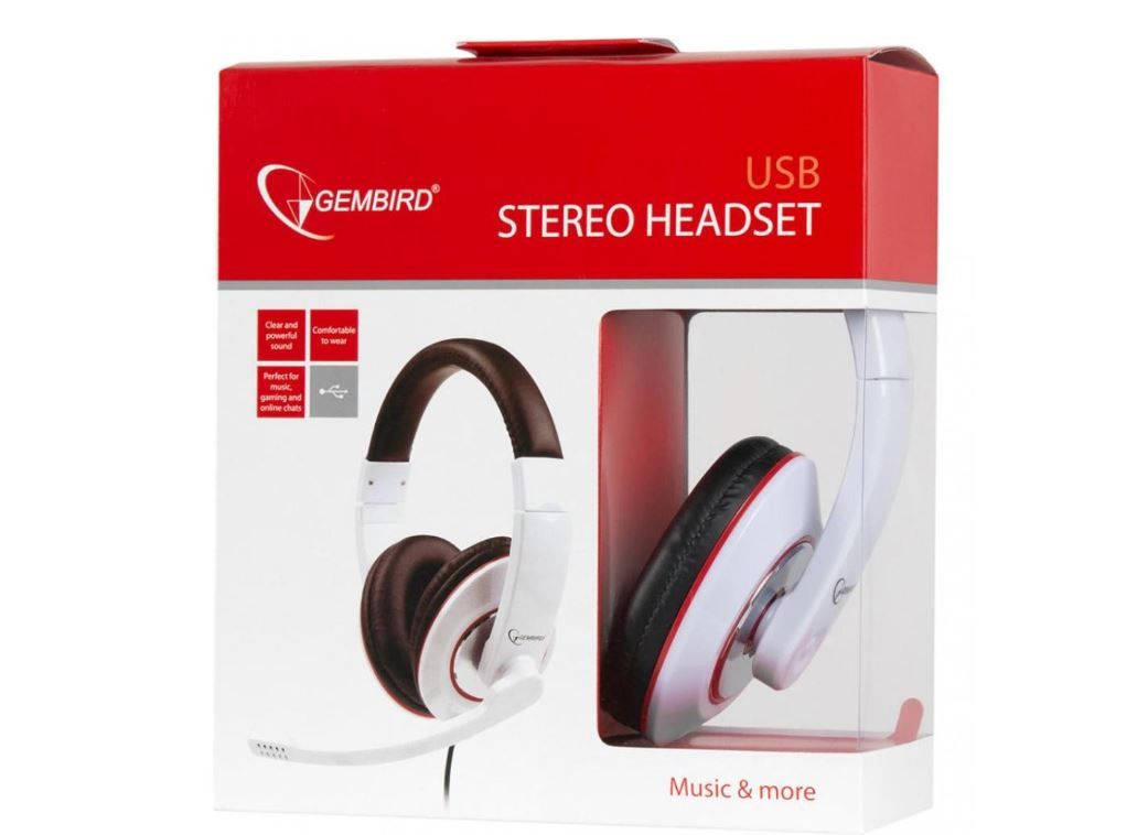 Гарнітура GEMBIRD MHS-001-GW комп'ютерна гарнітура з обертовим мікрофоном і з керуванням гучністю (з відключенням звуку) і мікрофоном на кабелі. Пристрій подарує Вам максимальний комфорт в експлуатації - великі зручні амбюшури з регульованим наголов'ям не завдадуть дискомфорту при тривалому використанні.