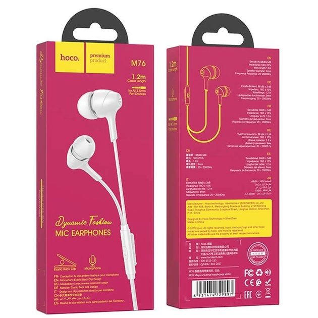 Навушники Hoco M76. Чутливість навушників 92 дБ. Мають вбудований мікрофон. Спосіб підключення Jack 3.5 mm.