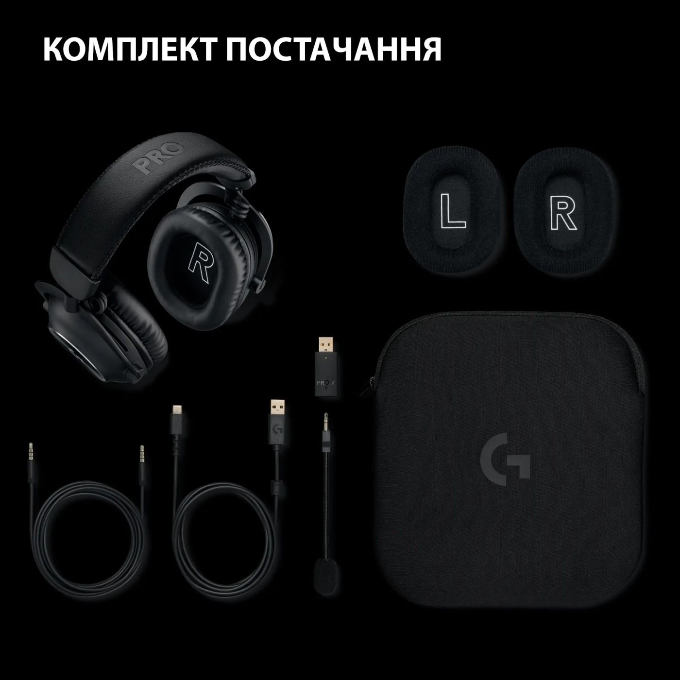 Входить до комплекту:амбушюри з ефектом пам'яті, тканинні амбушюри, адаптер USB-A LIGHTSPEED з портом 3,5 мм, знімний мікрофон, USB-A – USB-C, сумка, документація, амбушюри, адаптер USB-A LIGHTSPEED, мікрофон, USB-A-USB-C, чохол, документація