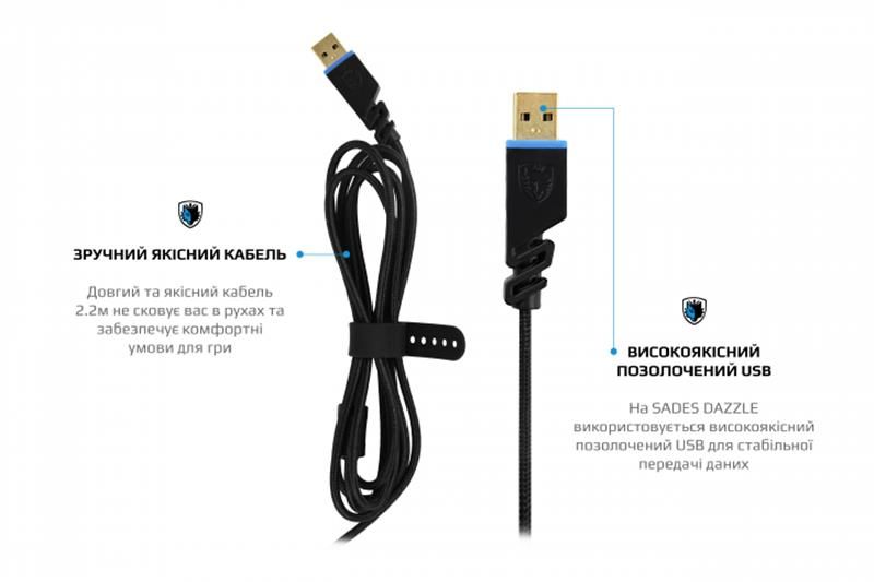 Регульоване наголів’я та амбушюри з м’якої екошкіри, мала вага (лише 260 г) та ергономічні форми Sades Dazzle надають комфорту у використанні впродовж тривалих ігрових сесій.