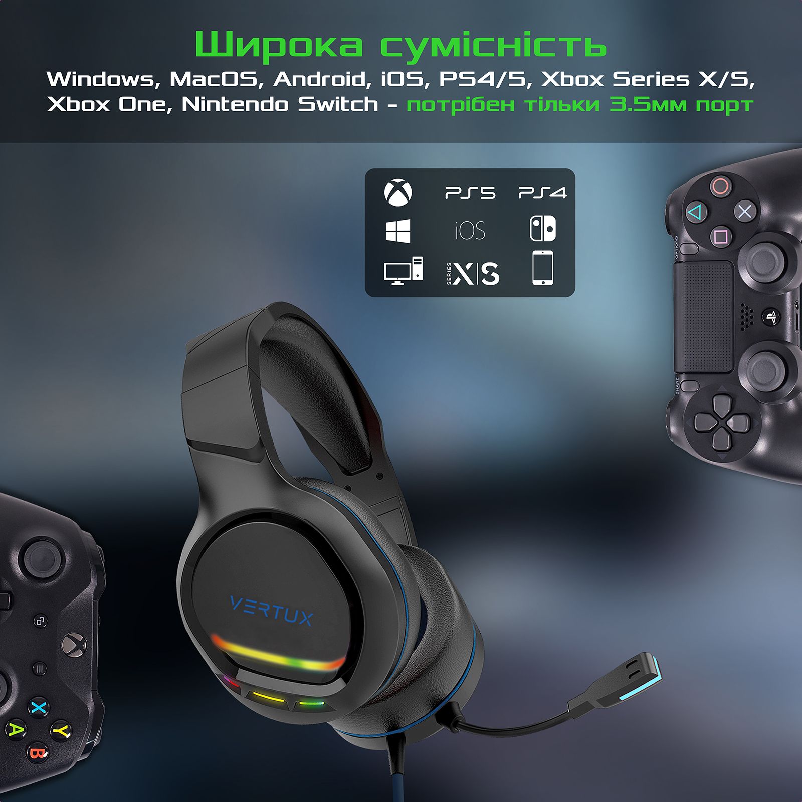 Широка сумісність: Windows, MacOS, Android, iOS, PS4, PS5, Xbox One, Xbox Series X, Xbox Series S, Nintendo Switch - тобі потрібен тільки вільний AUX 3.5мм порт.